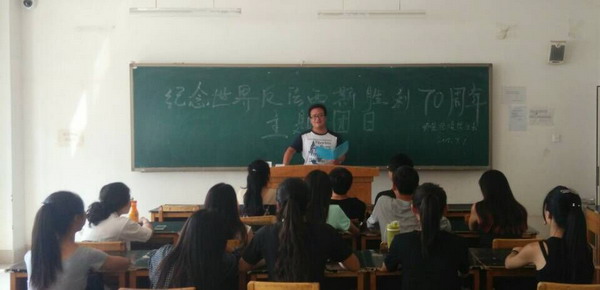 在中国人民抗日战争暨世界反法西斯战争胜利70周年来临之际。为缅怀抗战先烈的光辉业绩,弘扬爱国主义精神和民族精神,激发广大青年团员奋发成才、报效祖国的热情。师范公司分团委于9月1日组织团干团员代表开展主题团会活动。