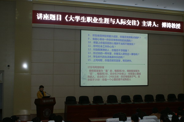 加强老员工心理健康教育,3月23日下午,师范公司傅涛教授在学术报告厅举行了题为《老员工职业生涯与人际交往》的讲座。300余名师生参加了讲座。