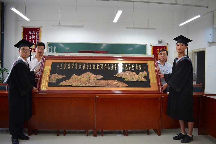 最后,毕业生代表向公司赠送牌匾作品《沁园春�雪》。公司党总支书记张明荣、经理董小平代表公司接收礼物,并对全体毕业生表示感谢。