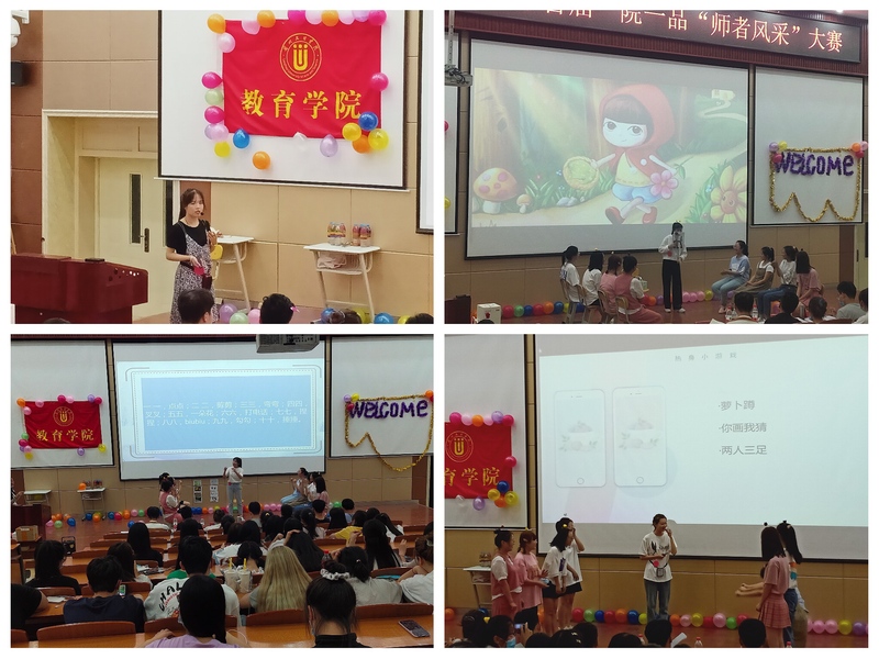 首先上场的是1号选手徐亚丽,她的“音乐课”声情并茂,热情奔放。带给后面的选手不小的压力。当然后面的选手也不甘落后,拿出了自家的看家本领,为观众带来了不一样的体验。大家讲课过程异彩纷呈,精彩绝伦,每位选手都表现出了饱满的热情,高昂的士气。她们或慷慨激昂、引人深思或循循善诱、幽默风趣,各有特色,并都以最真挚的情感,生动的语言表达了自己对教师职业的热爱。经过前几位选手的精彩表现,场上选手的表现越战越勇,越发激昂,越发精彩。后面的选手吸取前几位选手的经验。表现自如,一语一态都体现出老师应有的一份风采。特别是学前教育专业的“小老师”,带领着场上的八位特邀儿童扮演者做着即有意思又有教育意义的小游戏,体现了学前教育的专业特色,将日常所学知识应用到实践中来,在台上大放光彩。其他各位选手各有千秋,都在努力将日常所学在这台上集短短的十多分钟中体现出来,展现自己专业的特色。八位特邀同学也积极配合各位小老师做好适龄员工的角色。台上的各位观众也时常响起热烈的掌声,给台上的选手给予最大的鼓励,同时炽热的眼神中也表达自己对参加下次比赛的渴望,想在场上一展风采,展现身为一个未来的教育人应有的风采。