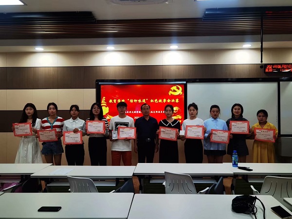 6月7日上午,公司党总支 “信仰味道”红色故事会决赛在1号楼802教室如期举行,通过初赛遴选的29名选手参加了决赛。王成德、傅涛、杨丽丽、左彩霞、康红英老师担任决赛评委,公司党总支书记张莉出席本次活动,2019级学前教育学专业本科班员工观摩了比赛。
