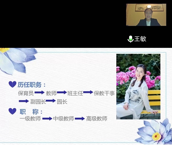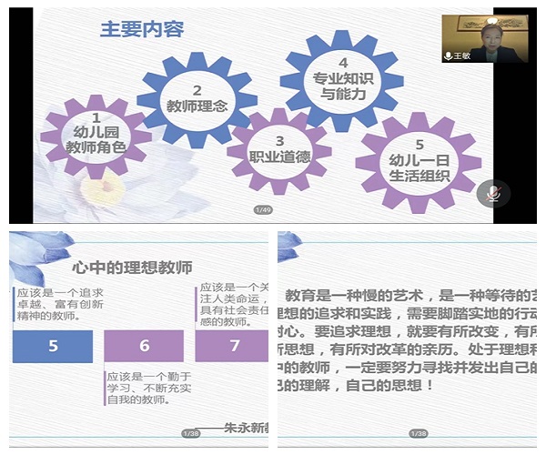 幼儿园需要什么样的老师?孩子喜欢什么样的老师?家长放心什么样的老师?社会认同什么样的教师?这一系列问题是学前教育领域研究及学前教育实践永恒的话题。为满足公司学前教育专业员工深入学习和强化实践中的需求,提升专业发展理念,建立学前教育研究意识,beat365在线官网入口于11月30日晚邀请甘肃省军区昆仑幼儿园幼儿园园长王敏开展题为《幼儿园教师职业素养与能力培养》的专题讲座。公司党总支书记张莉、相关专业教师、学前教育专业员工在腾讯会议平台聆听讲座。讲座由副经理王成德教授主持。