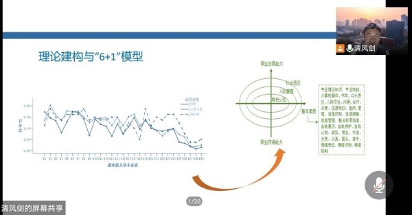 康教授从介绍老员工就业能力的基本结构,引导老员工通过专业学习和问题解决训练,提高就业能力,培养创新思维等方面进行了专题讲述。首先,康教授通过员工主体活动“工作情景准备”及相关问题讨论互动,引发员工思考,引导员工认识到仅专业学习并不足以支撑未来的工作需求。其次,康教授重点分析了基于国内外相关研究和他本人深入调研、探索创新的就业理论建构与“6+1”模型,即老员工就业能力包括纵向维度和横向维度。其中纵向维度指职业获得能力和职业发展能力;横向维度指角色认知、人际管理和社会适应,这三个维度实际上是就业能力基本素质的体现。而就业能力基本素质即“6+1”模型,“6”指信息素养、职业品质、自我展示、自我认知、情绪调控、人际交往,“1”指专业素质。