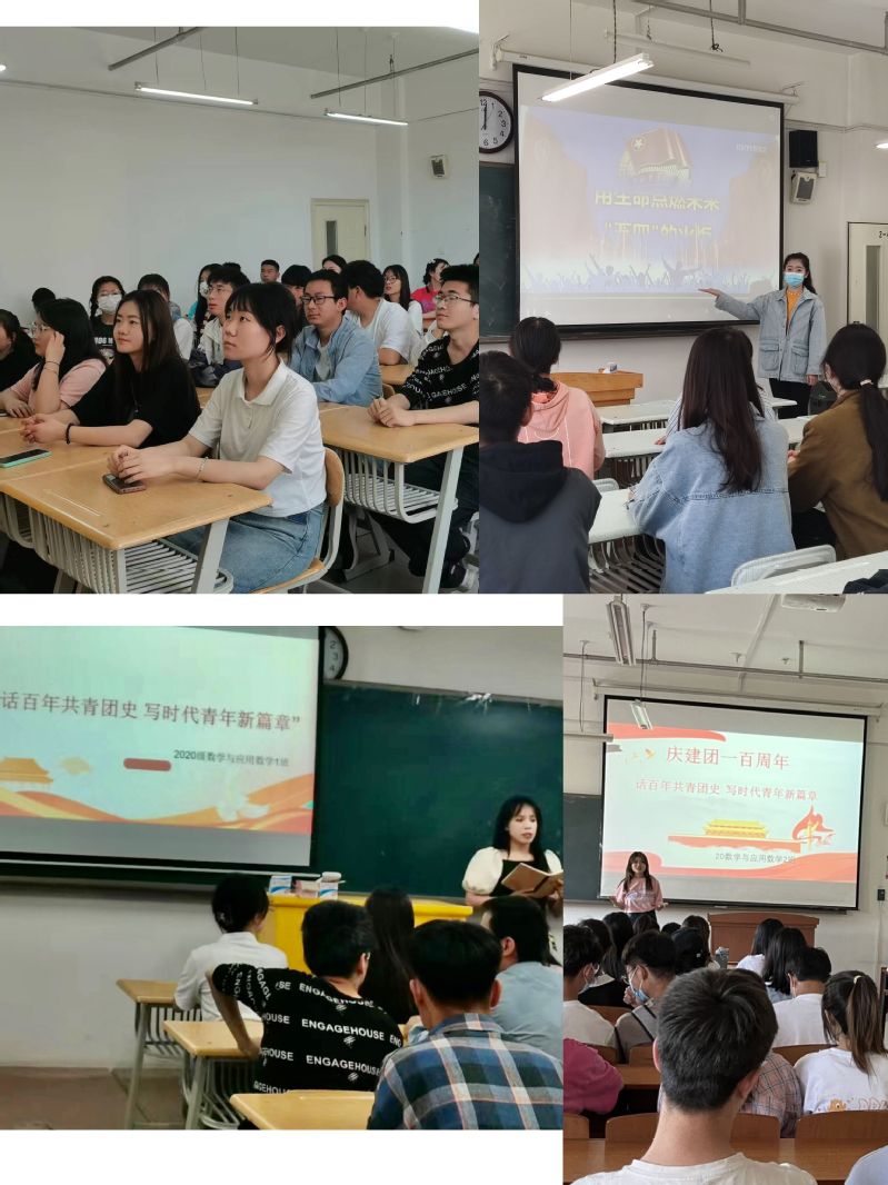 2020级数学与应用数学2班妥小雪、韩钰,2020级数学与应用数学1班闵晓兰、方艺蒙以青年视角为团员青年们带来了一堂以“话百年共青团史 写时代青年新篇章”为主题的生动宣讲。宣讲时,融入了员工们互动问答、朗读书信、观看视频等形式,讲活百年团史,让团员们感受中国青年从未消退的奋斗底色,启迪青年团员在新时代中充分发展自我,拼尽全力多学本领,接续奋斗。支部组织委员李志军带领大家学习了习近平总书记在中国人民大学考察时的重要讲话精神。2019级数学与应用数学2班周梦瑶带领大家同唱《光荣啊!中国共青团》,一起回顾革命先辈的青春故事。