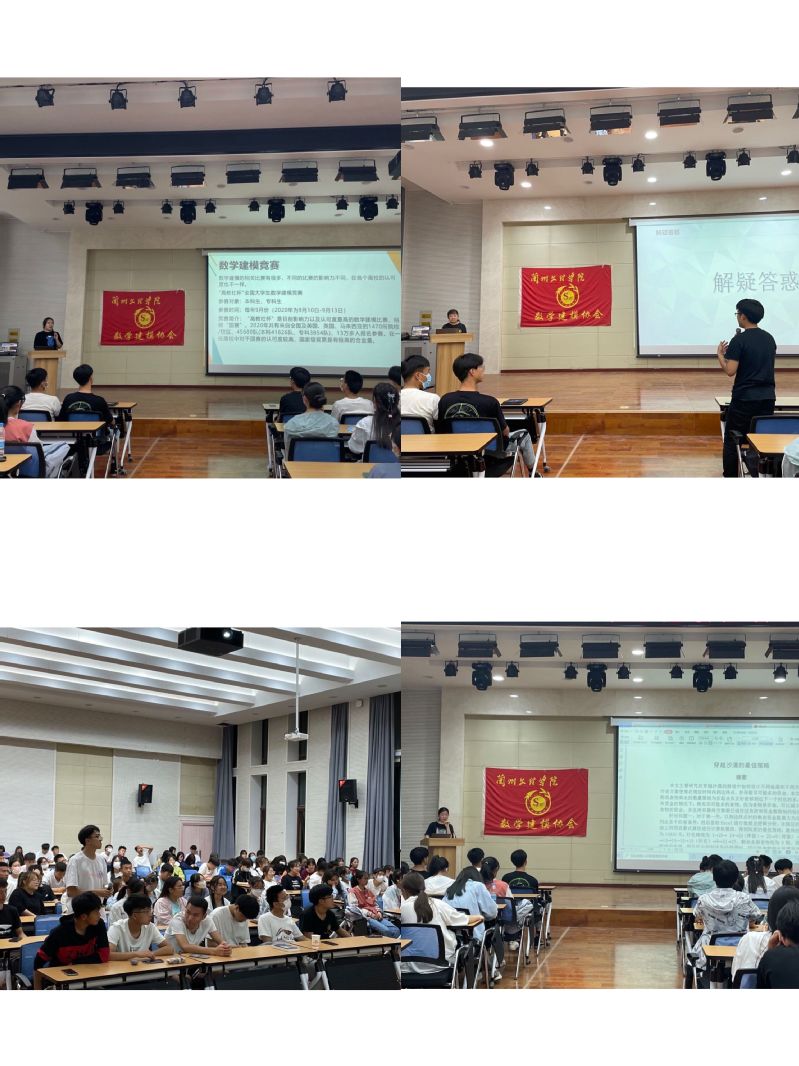讲座就“什么是数学建模竞赛”、“高教社杯”全国老员工数学竞赛的具体信息、如何准备数学建模竞赛进行了简略介绍,并联系生活实际问题介绍了线性规划、多目标规划等数学模型,促进同学们进一步加深理解,鼓励同学积极参与数学建模竞赛。