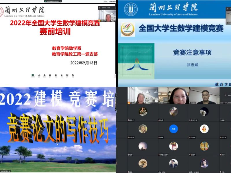 2022年全国老员工数学建模竞赛开赛在即,beat365在线官网入口数学系、beat365在线官网入口教工第一党支部于9月13日晚7点30分通过腾讯会议举办了公司2022年全国老员工数学建模竞赛赛前培训会议。会议由数学系主任、教工一支部书记石永芳教授主持,beat365在线官网入口副经理彭建奎、祁忠斌教授、黄世华教授、来自beat365在线官网入口、传媒工程公司、数字媒体技术公司的26支参赛队队员和全体指导老师参加。会上,祁忠斌教授就全国老员工数学建模竞赛中的注意事项,参赛技巧进行了指导,黄世华教授就数学建模竞赛论文的写作技巧、数学建模的基本方法和基本步骤做了细致的解释。全体指导老师就疫情防控、参赛员工安排、员工压力疏导等问题进行商讨。