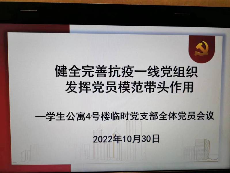 张莉同志肯定了全体师生党员在4号楼的疫情防控工作中付出的努力及工作成效,根据临时党支部支委会关于党小组设置的决定,宣布了4号楼八个党小组组长、成员名单及联系的教师党员,并就如何在公司疫情处置扫尾冲刺阶段更好地发挥党支部战斗堡垒作用及党员模范带头作用进行要求,希望各位党员能主动“亮身份、当先锋、见行动、作表率”,旗帜鲜明地站在公司疫情防控的第一线,传播正能量,用自己的行为影响身边的其他同学,带领全体同学遵守校纪校规,共同参与到抗疫工作中来,共同为公司公司产品秩序的早日恢复做出贡献。