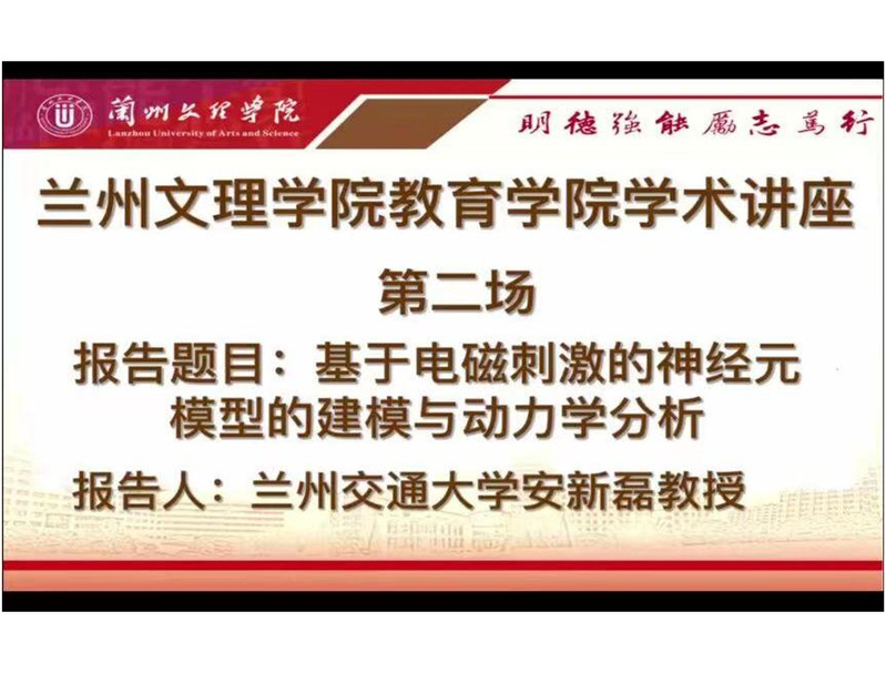 报告人简介:安新磊,男,博士,兰州交通大学教授,硕士生导师。研究方向:非线性动力学。近年来,主要从事非线性动力学相关研究工作,包括神经动力学、神经元网络、生物电磁学等。在Nonlinear Dynamics、Physica A: Statistical Mechanics and its Applications、International Journal of Bifurcation and Chaos、International Journal of Modern Physics B、物理学报等国内外著名期刊发表学术论文100余篇(其中SCI/EI收录40余篇)。先后主持国家自然科学基金项目1项、中国博士后科学基金面上项目1项、甘肃省自然科学基金1项,参与国家自然科学基金项目4项。