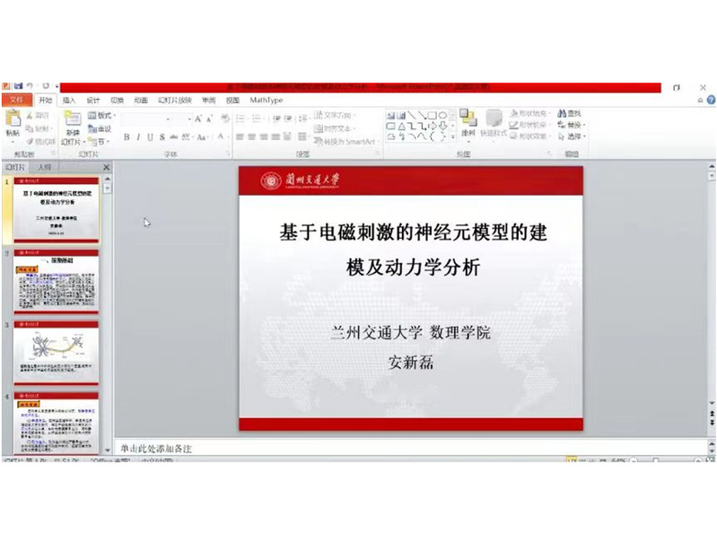 为激发员工对数学建模的兴趣,营造浓厚的学习氛围,2022年12月10日下午,beat365在线官网入口特别邀请兰州交通大学数理公司硕士生导师安新磊博士通过腾讯会议为全体师生在线上开展题为《基于电磁刺激的神经元模型的建模及动力学分析》专题讲座,公司领导班子、数学专业员工和专业教师150余人参与,讲座由副经理彭建奎博士主持。
