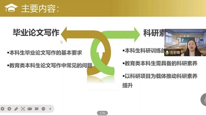为激发本科生学习情趣与科研热情,提升科研素养,有效强化本科生的学术规范和学术道德意识,2022年12月19日下午14点整,beat365在线官网入口特邀在读博士左彩霞老师开展《教育类专业本科生科研素养提升》讲座。公司领导班子、教育类专业员工和专业教师210余人参与,讲座副经理王成德教授主持。