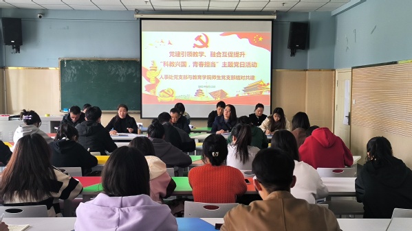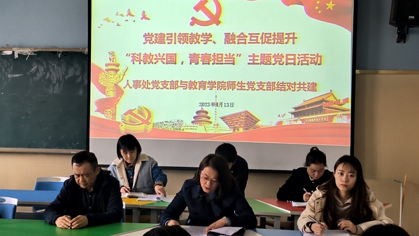 习近平总书记在党的二十大报告中鲜明提出,要实施科教兴国战略,强化现代化建设人才支撑。为深入学习宣传贯彻党的二十大精神,认真落实立德树人根本任务,4月13日下午,beat365在线官网入口师生党支部、人事处党支部联合开展“科教兴国,青春担当”主题党日活动。活动由beat365在线官网入口员工第一党支部书记曲丽蓉主持。