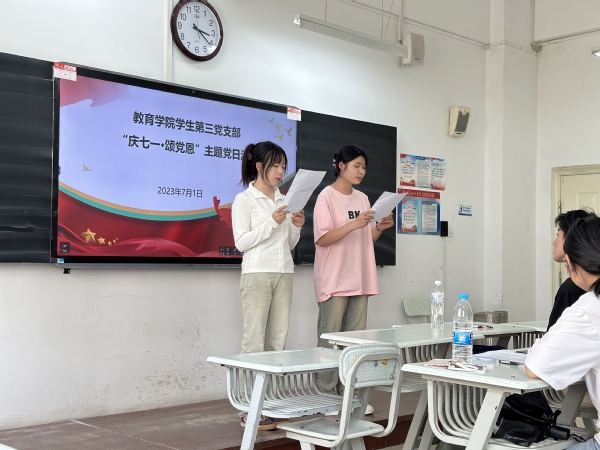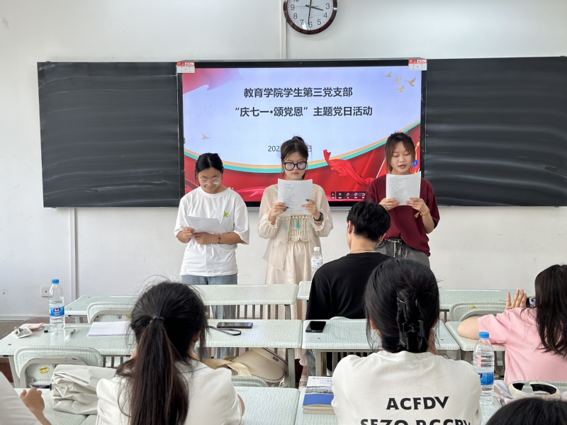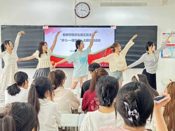 活动充分结合各专业特点,内容丰富,形式多样。22级小学教育二班王斐演唱歌曲《没有共产党就没有新中国》,铿锵有力的歌词,气势磅礴的旋律,再次告诉我们:在中国共产党的坚强领导下,全国各族人民团结一心、艰苦奋斗、开拓进取、奋力前行。22级小学教育一班肖彤等用优美大气的舞蹈《灯火里的中国》,诠释了爱党敬党、以奋进的青春姿态奔向新时代美好生活的真实情感和精神风貌。21级心理咨询班许蓉等朗诵红色经典诗词《红船颂》,发自肺腑的青春激情,让大家感悟了革命先烈的理想信念,汲取奋勇向前的精神力量。