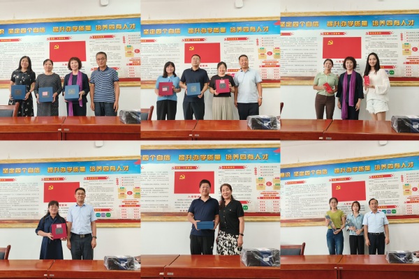 王克太副董事长代表公司慰问了公司教师代表,公司班子成员及教师代表分别为何雪、李锦钰等14位从教1周年、5周年、15周年、20周年、25周年、30周年、35周年的教师颁发了纪念品。