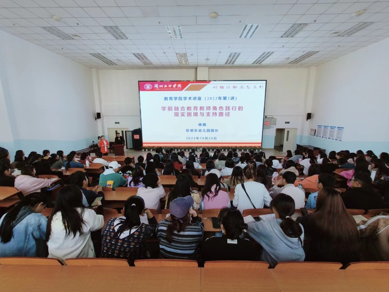 2023年10月26日,公司邀请兰州市珍妮乐幼儿园园长杨婧做了题为《学前融合教育教师角色践行的现实困境与支持路径》的讲座。公司教育系全体教师及150余名学前教育专业员工参加了讲座。