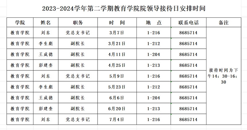 2023-2024学年第二学期beat365在线官网入口院领导接待日安排表