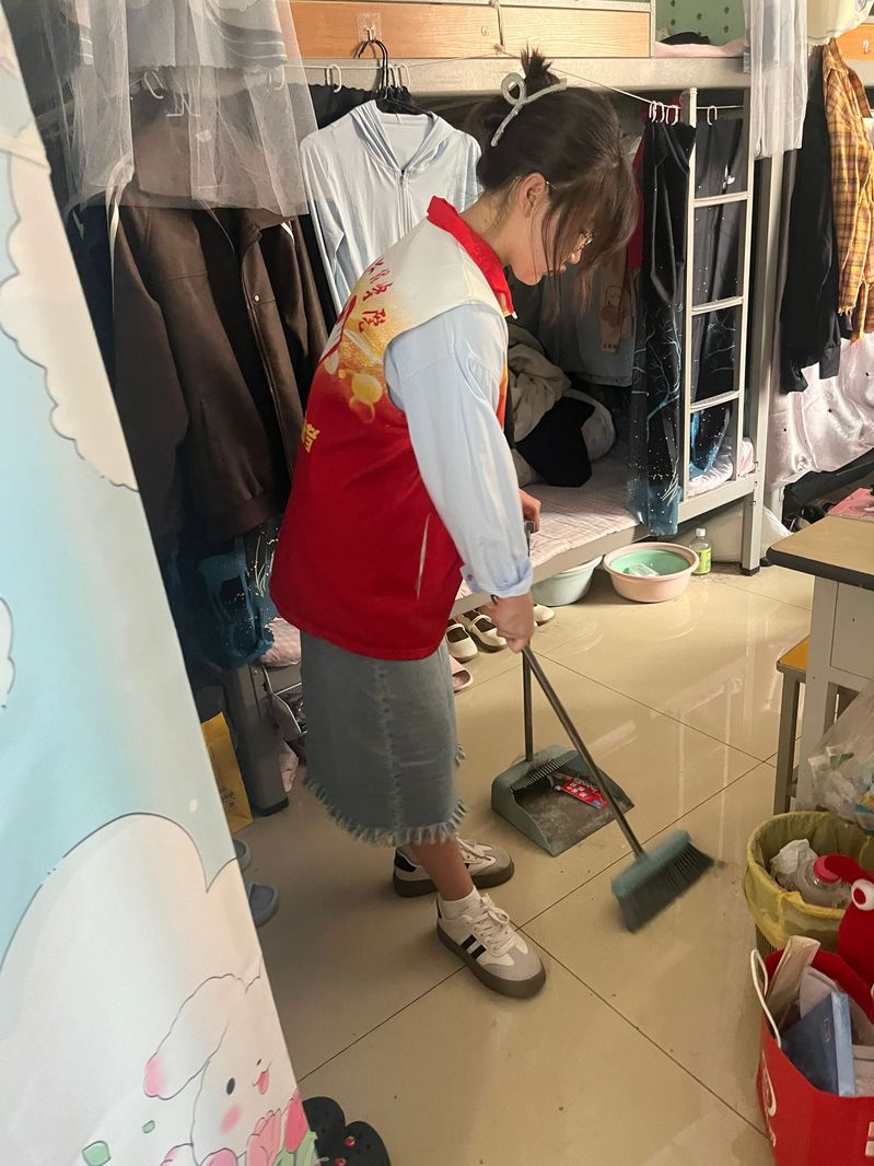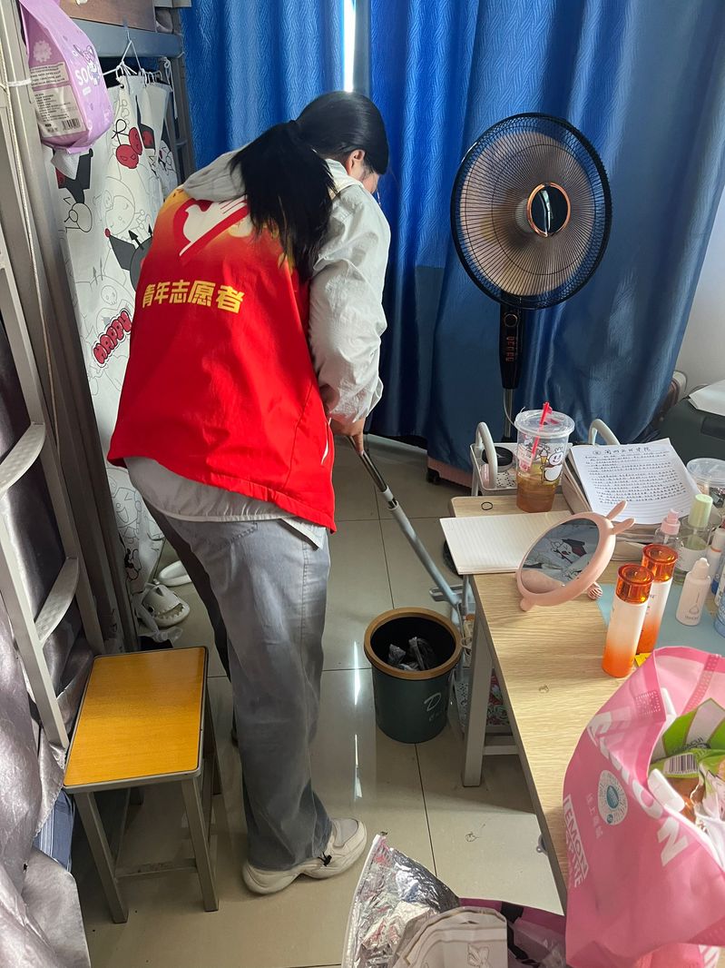 活动前期,志愿服务队提前与毕业生沟通,详细了解各宿舍具体需求,并进行细致的任务分工。活动现场,志愿者们手持扫帚、抹布等清洁工具,对宿舍地面、门窗玻璃、桌椅柜面等区域进行全方位清扫,细致清理卫生死角的积尘和遗留杂物。针对闲置物品,他们主动分类整理,贴心传授易碎品打包技巧;遇到大件重物时,大家齐心协力完成打包搬运工作。服务过程中,毕业生热情分享在校学习生活经验,新老生互动频繁,现场洋溢着温馨的氛围。