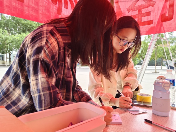 9 月 7 日,beat365在线官网入口志愿服务队在思源楼广场举办 “笔墨传情颂师恩” 庆祝第 41 个教师节主题活动。