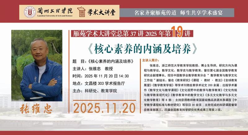 雁苑学术大讲堂预告:《核心素养的内涵及培养》