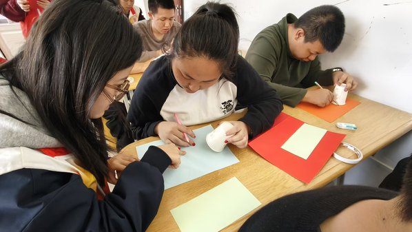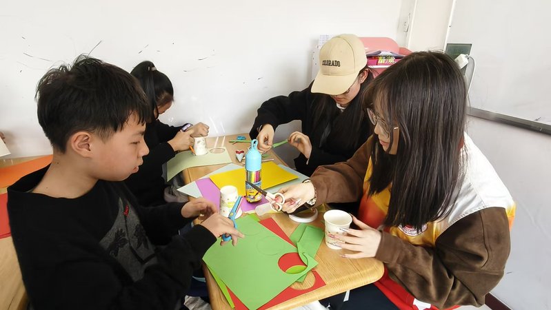活动中,志愿者与特殊儿童一对一结对,共同为妈妈制作节日礼物。现场备好彩纸、剪刀等材料,志愿者俯身耐心引导,手把手教授手工技巧,用温柔的话语鼓励每一个孩子。孩子们虽表达有限,但专注的眼神和作品完成后的灿烂笑容,满是对妈妈的爱意,现场温馨动人。