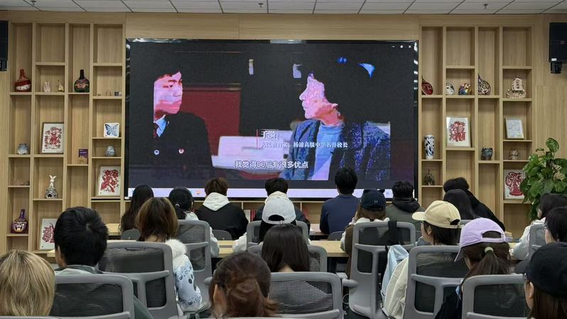 在观影环节,全体参会人员共同观看了于漪先生生平事迹纪录片《大先生》。影片中,从“半路出家”钻研语文教学的艰辛求索,到提出“工具性与人文性统一”的语文教育革新理念;从90岁高龄仍走进课堂听课评课的执着坚守,到首创“师徒带教”模式培育三代特级教师的无私奉献,一个个感人至深的教育故事、一句句振聋发聩的教育箴言,生动再现了于漪先生“精心育人的一代师表,潜心教改的一面旗帜”的崇高风范。同学们深切感受到“一个肩膀挑着员工的现在,一个肩膀挑着祖国的未来”的师者担当。